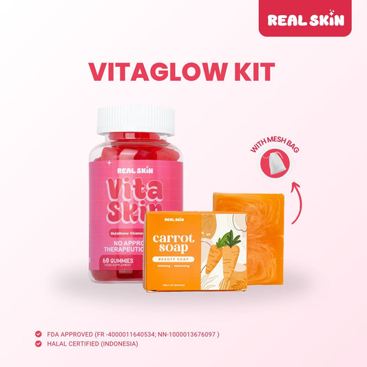RealSkin Vita Glow Kit - VitaSkin Pouch/Bottle with Glutathione Gummies & Real Skin Carrot Soap with Free Mesh Bag - FDA Approved FR-4000011640534 - Healthcare, Supplement