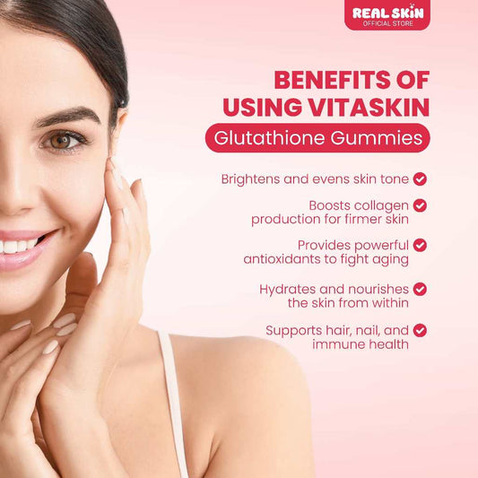 Real Skin VitaSkin Gluta Gummies - All Natural and FDA Approved Skin Brightening Vitamins with Marine Collagen Glutathione Vitamin C Food Supplement